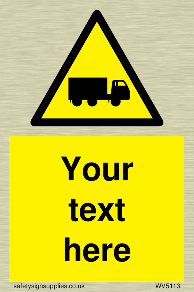 Custom Lorry Hazard Sign. Add your own custom text. Normal delivery times apply. Yellow Lorry Hazard Symbol. This symbol and sign layout complies with new EN7010 legislation that governs safety signs.