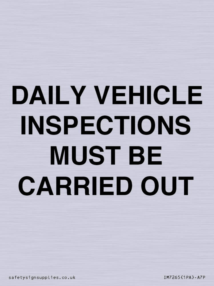 DAILY VEHICLE INSPECTIONS MUST BE CARRIED Sign