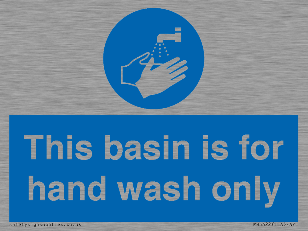 Sign Text: This basin is for hand wash only Dimensions: 100x75mm Material: Stainless Steel Orientation: Landscape Text Colour: White Background Colour: Blue More...