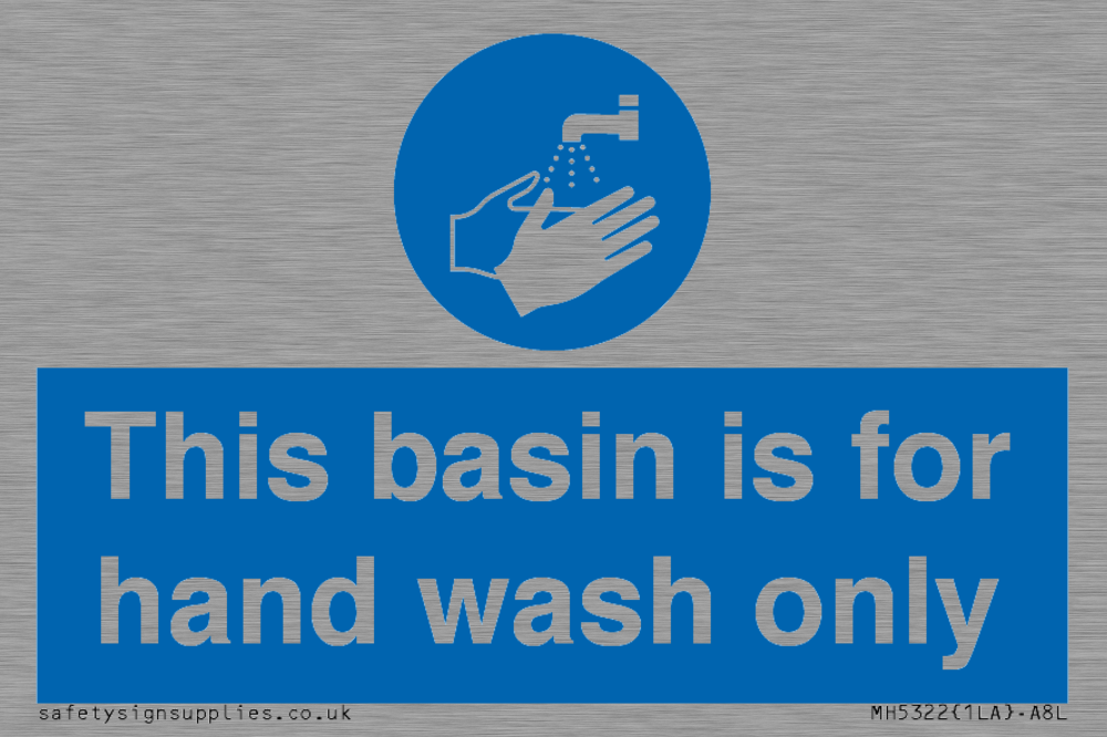 Sign Text: This basin is for hand wash only Dimensions: 75x50mm Material: Stainless Steel Orientation: Landscape Text Colour: White Background Colour: Blue More...