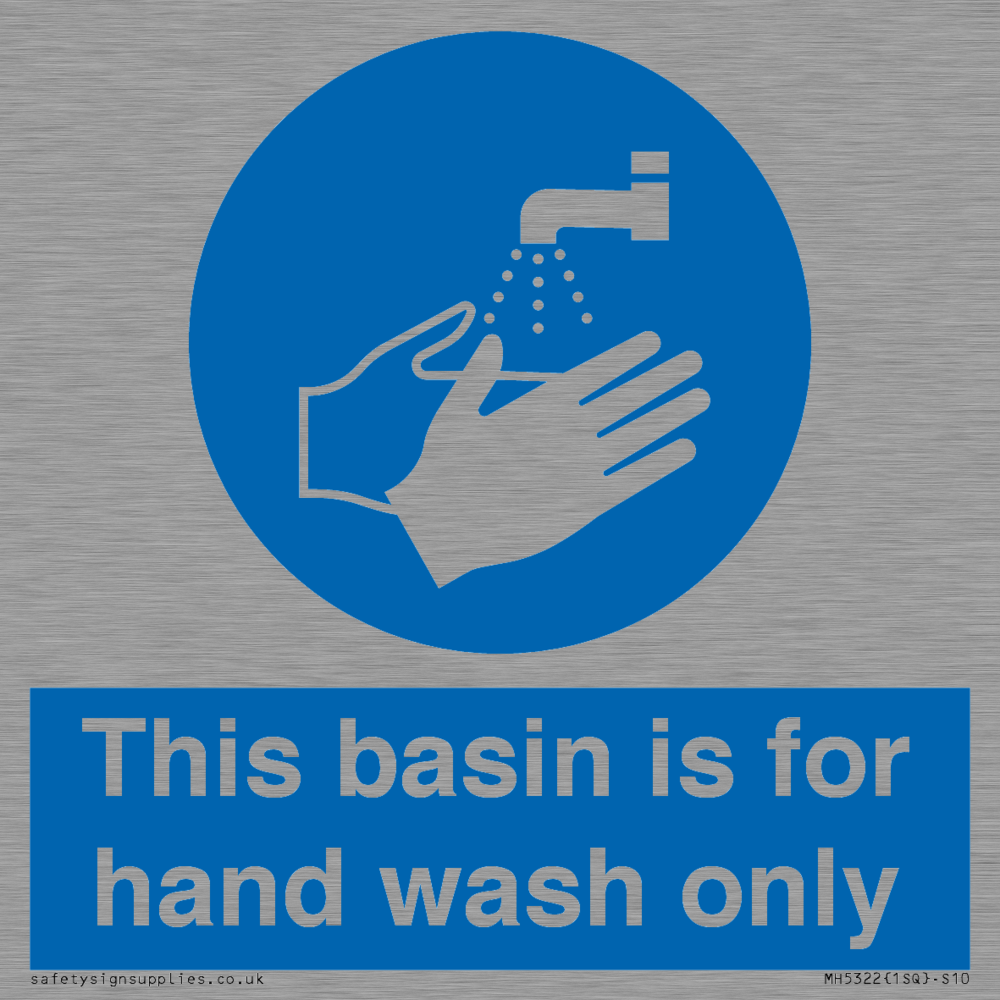 Sign Text: This basin is for hand wash only Dimensions: 100x100mm Material: Stainless Steel Orientation: Square Text Colour: White Background Colour: Blue More...