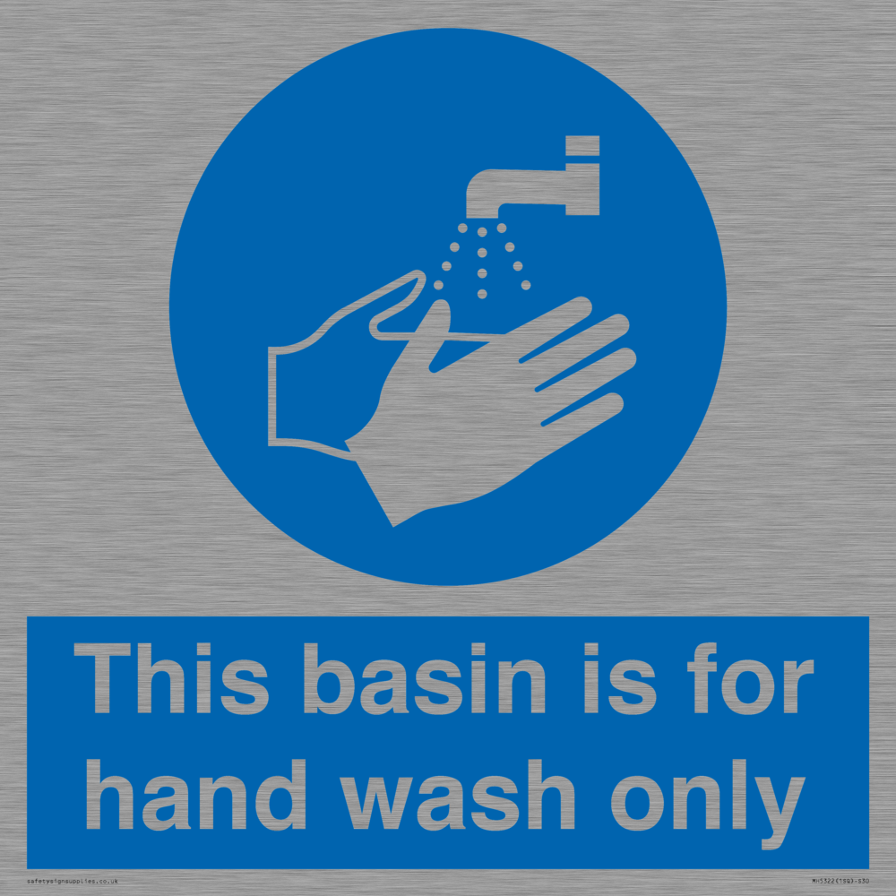 Sign Text: This basin is for hand wash only Dimensions: 300x300mm Material: Stainless Steel Orientation: Square Text Colour: White Background Colour: Blue More...