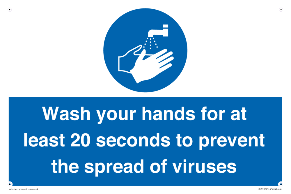 Sign Text: Wash your hands for at least 20 seconds to prevent the spread of viruses
