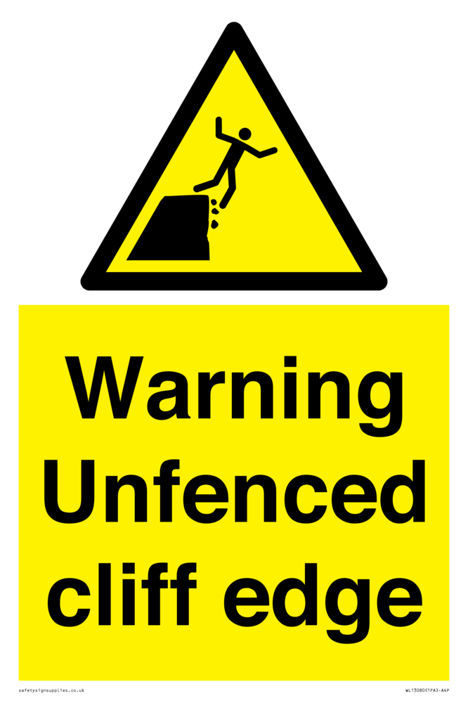 Sign Text: Warning Unfenced cliff edge