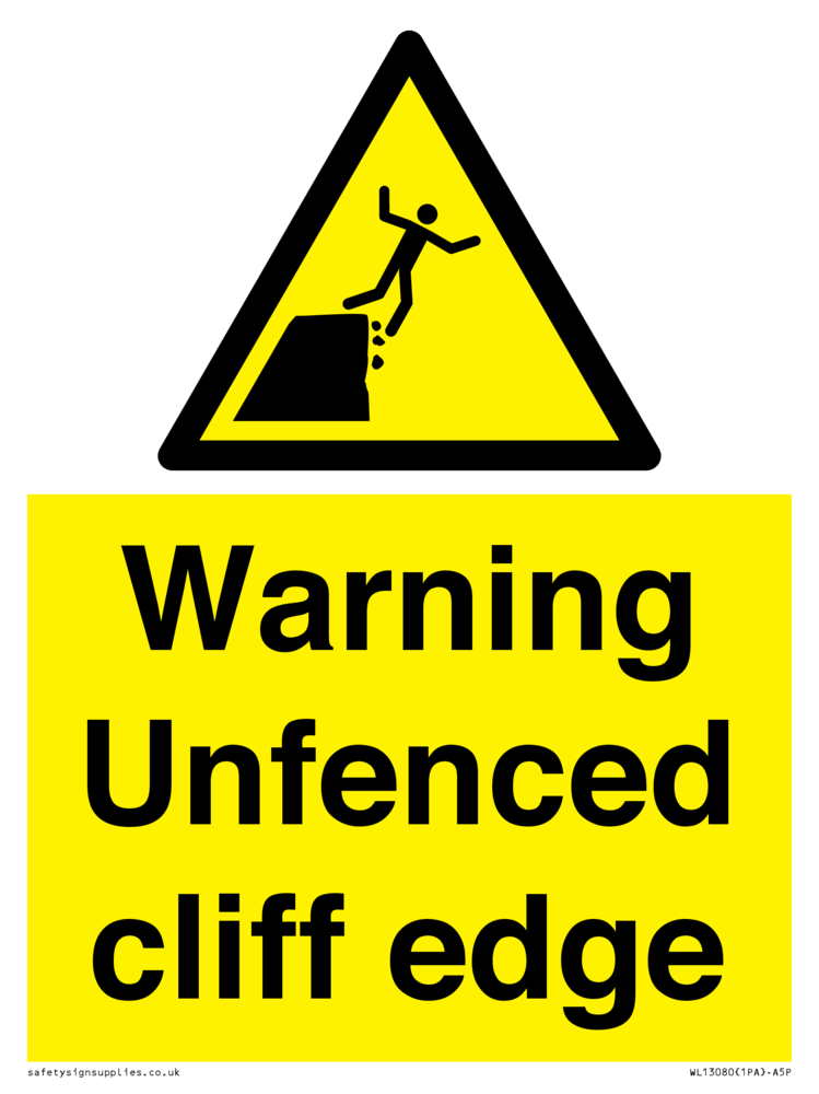 Sign Text: Warning Unfenced cliff edge