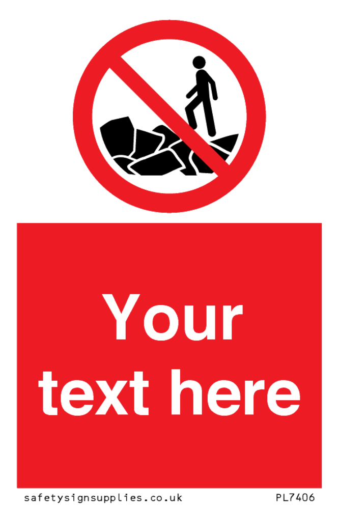 Suitable for mounting on a door. Suitable for mounting on cladding. This product is design to be mounted on the ceiling. Custom signs contain the text required by the customer. With your your text and a standard safety sign symbol - a bespoke sign can fit any requirement.