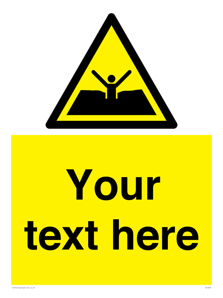 Suitable for mounting on a flat surface. Suitable for mounting on a door. Suitable for mounting on cladding. This product is design to be mounted on the ceiling. Custom signs contain the text required by the customer. With your your text and a standard safety sign symbol - a bespoke sign can fit any requirement.