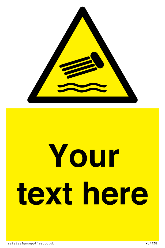 Suitable for mounting on a flat surface. Suitable for mounting on a door. Suitable for mounting on cladding. This product is design to be mounted on the ceiling. Custom signs contain the text required by the customer. With your your text and a standard safety sign symbol - a bespoke sign can fit any requirement.