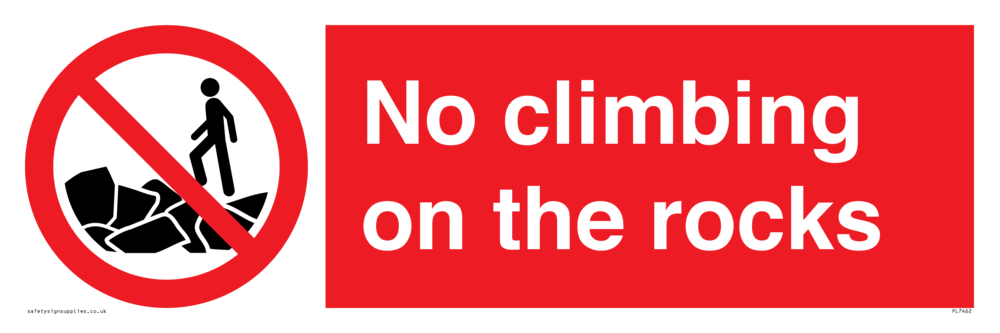 Sign Text: No climbing on the rocks
