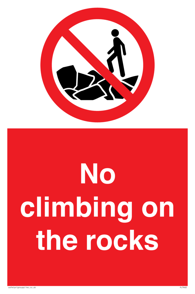 Sign Text: No climbing on the rocks