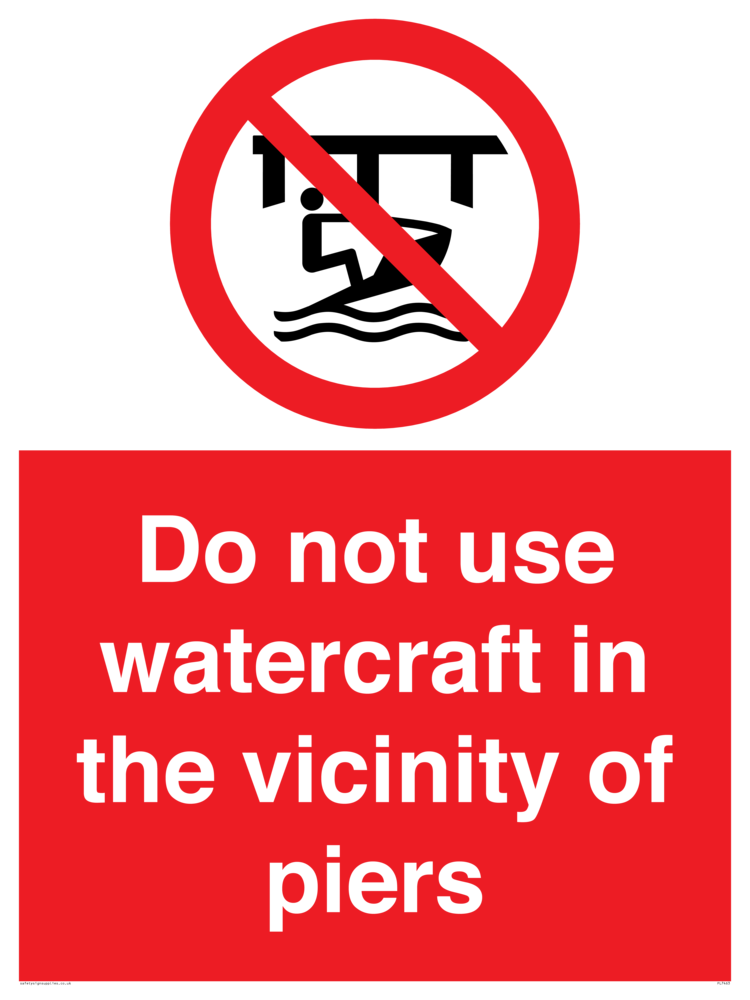 Sign Text: Do not use watercraft in the vicinity of piers