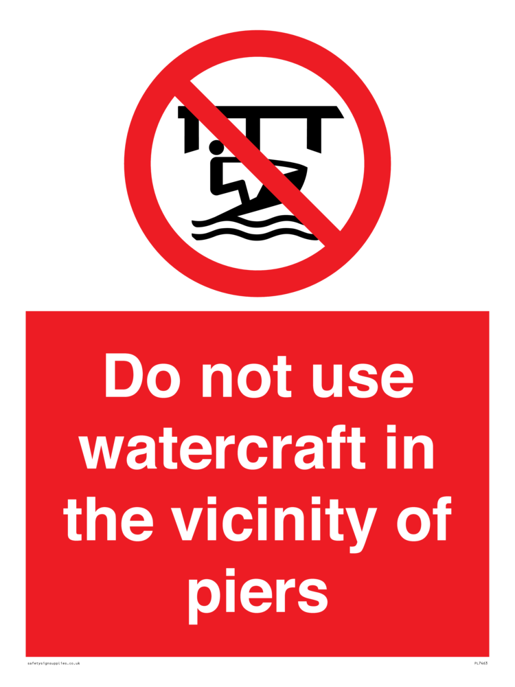 Sign Text: Do not use watercraft in the vicinity of piers