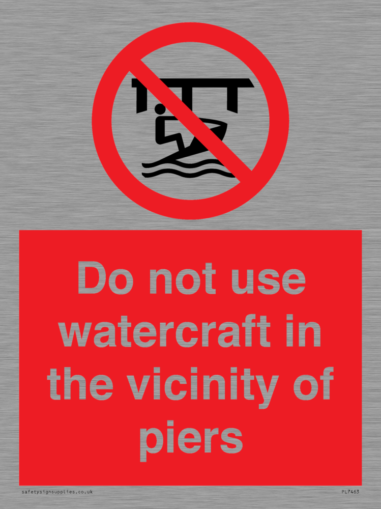 Sign Text: Do not use watercraft in the vicinity of piers