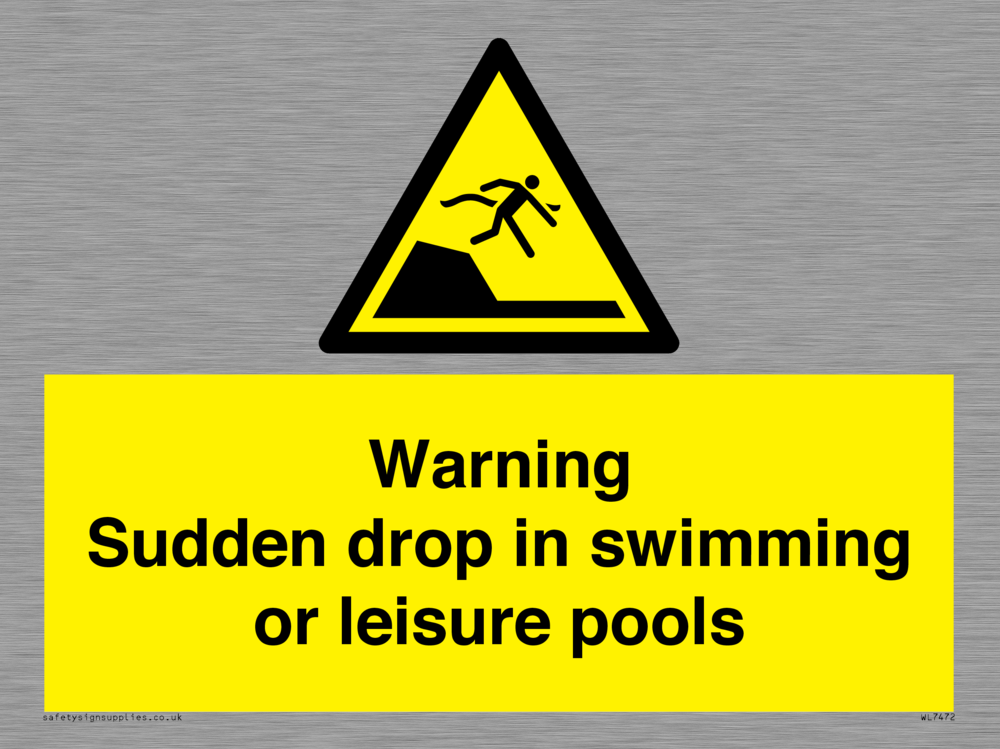 Sign Text: Warning sudden drop in swimming or leisure pools