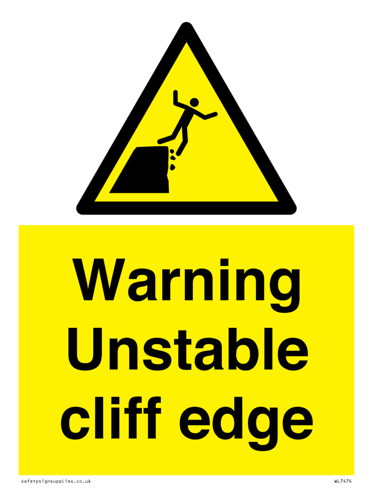 Sign Text: Warning unstable cliff edge