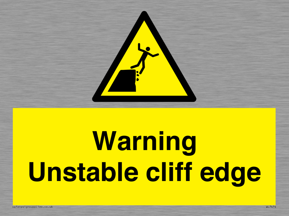 Sign Text: Warning unstable cliff edge