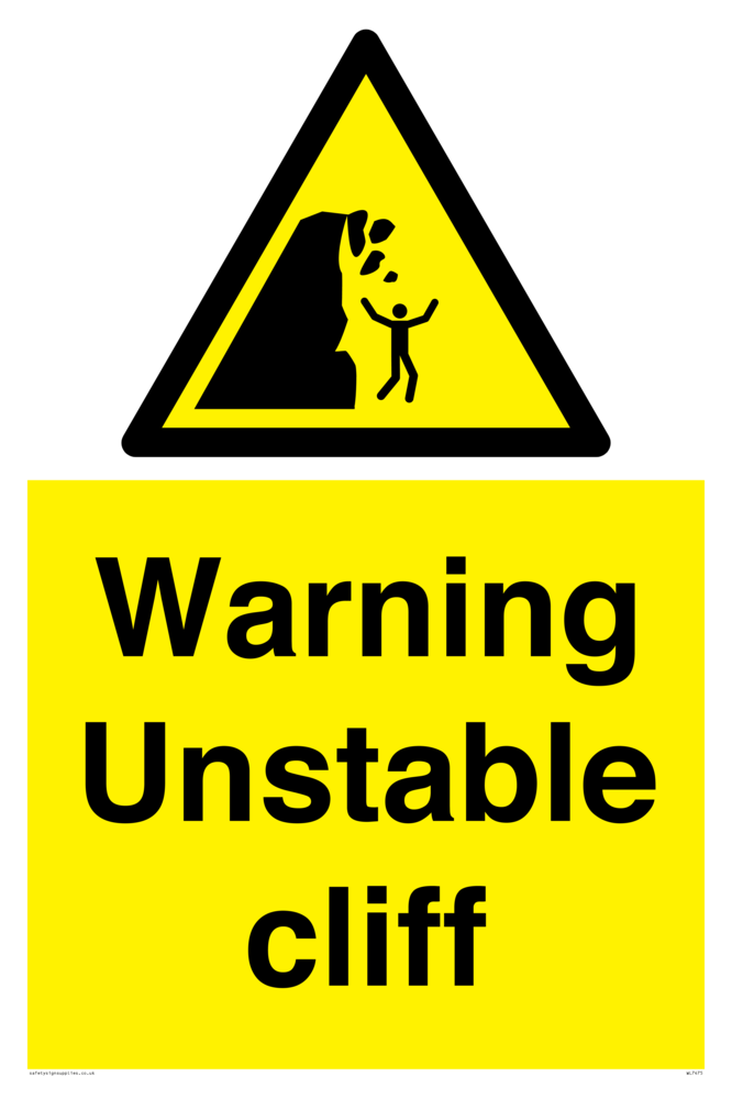 Sign Text: Warning unstable cliff