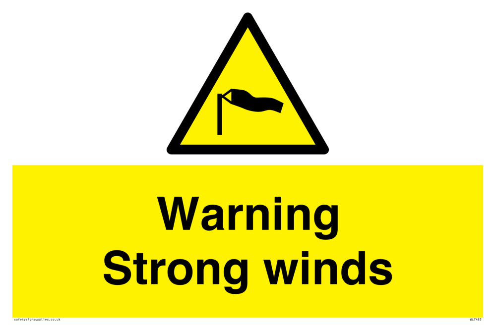 Sign Text: Warning Strong winds