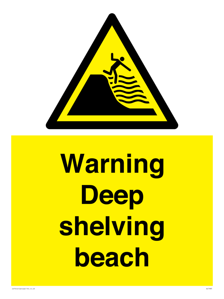 Sign Text: Warning Deep shelving beach