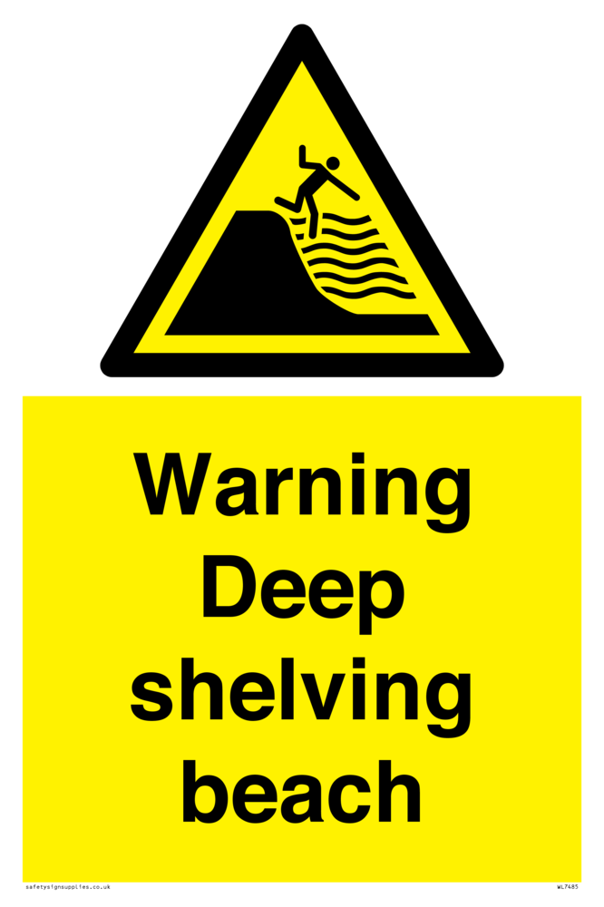 Sign Text: Warning Deep shelving beach