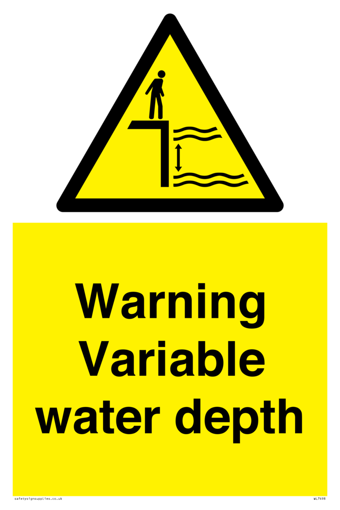 Sign Text: Warning Variable water depth
