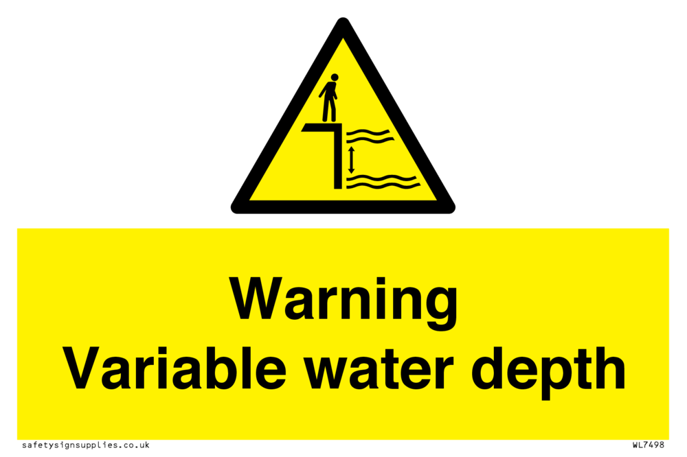 Sign Text: Warning Variable water depth