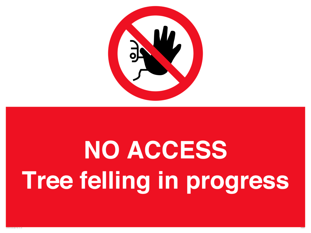 This sign contains a no access symbol - person in black with red circle crossed through.