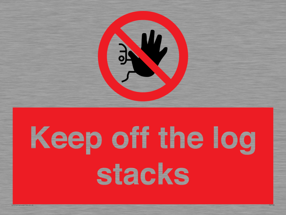 Sign Text: Keep off the log stacks