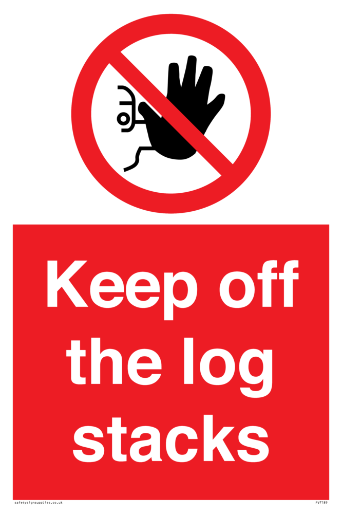 Sign Text: Keep off the log stacks