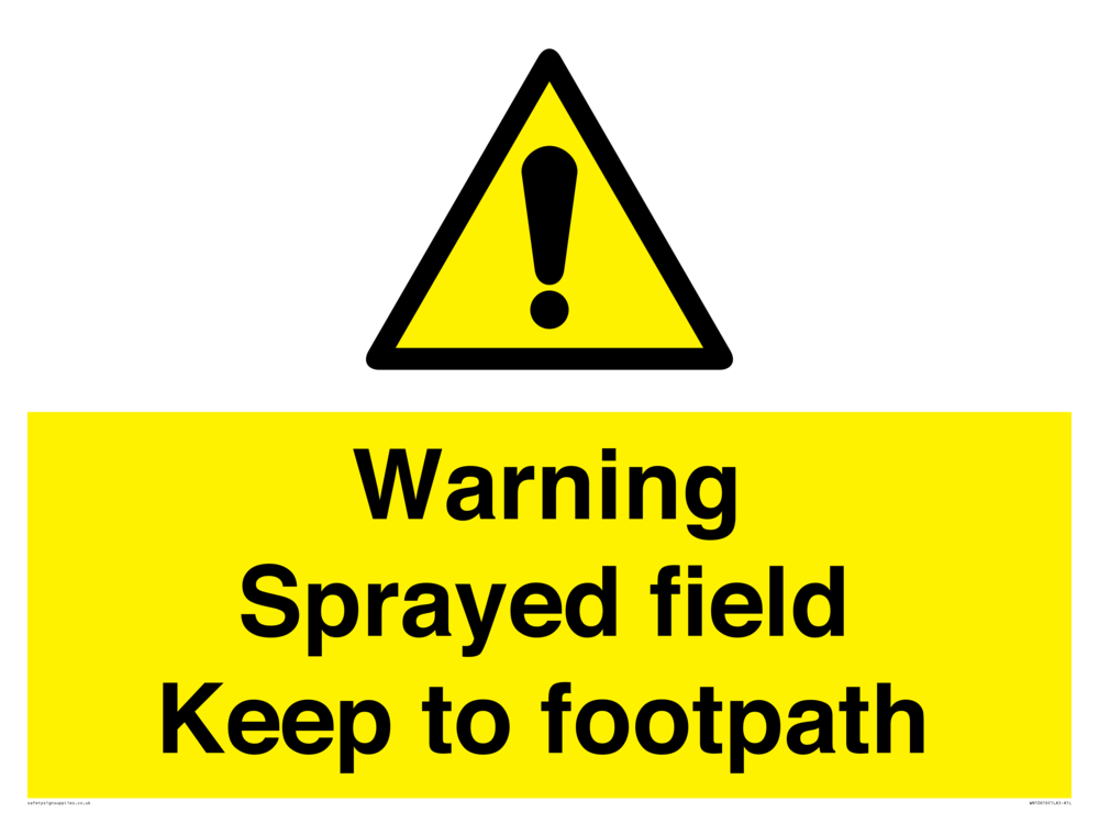 Sign Text: WarningSprayed field Keep to footpath