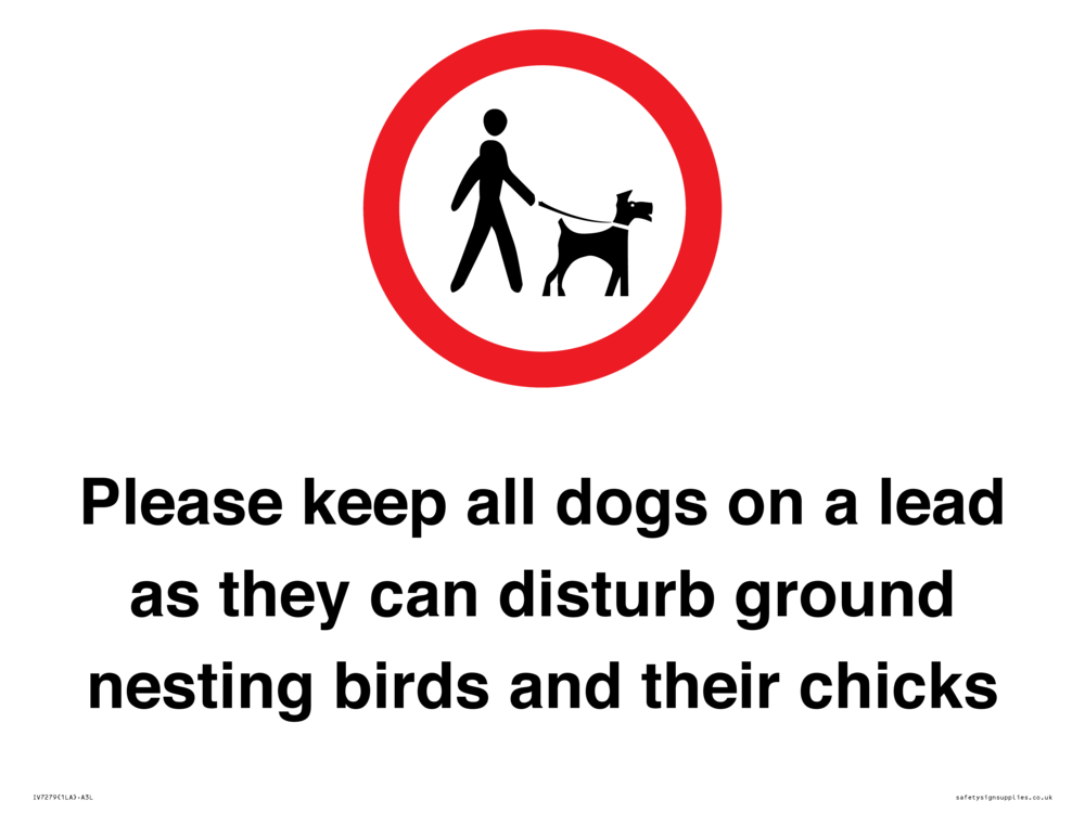 Sign Text: Please keep all dogs on a lead as they can disturb ground nesting birds and their chicks