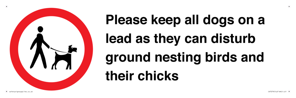 Sign Text: Please keep all dogs on a lead as they can disturb ground nesting birds and their chicks