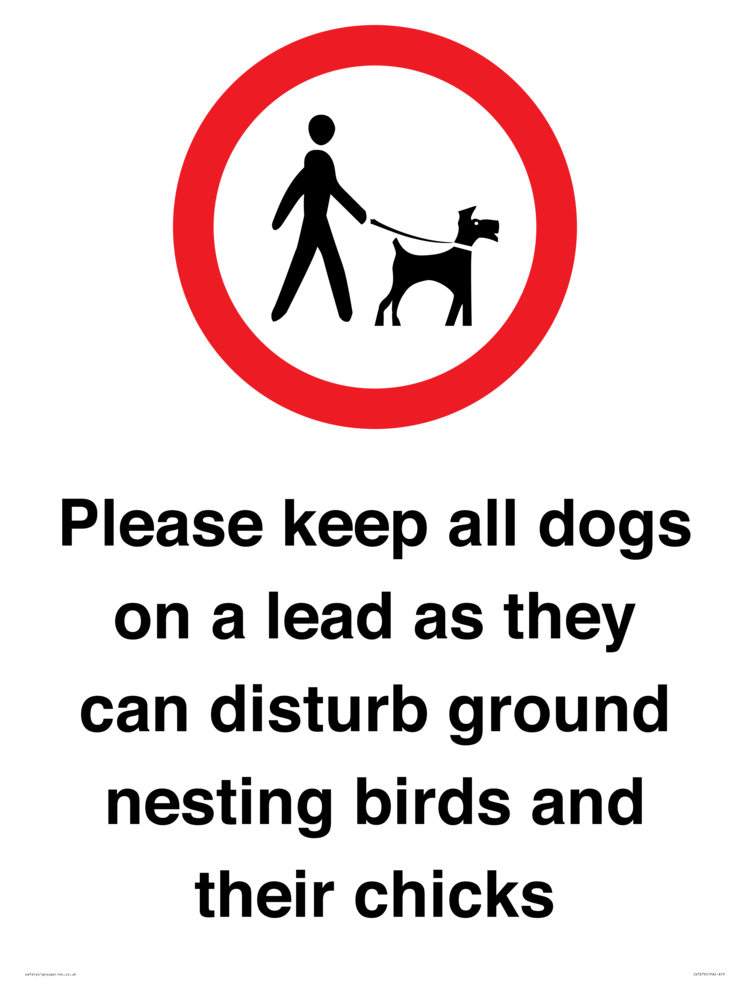 Sign Text: Please keep all dogs on a lead as they can disturb ground nesting birds and their chicks