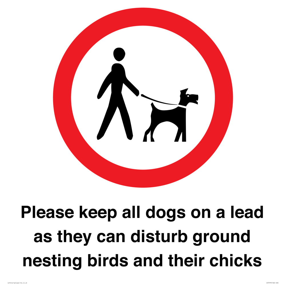 Sign Text: Please keep all dogs on a lead as they can disturb ground nesting birds and their chicks