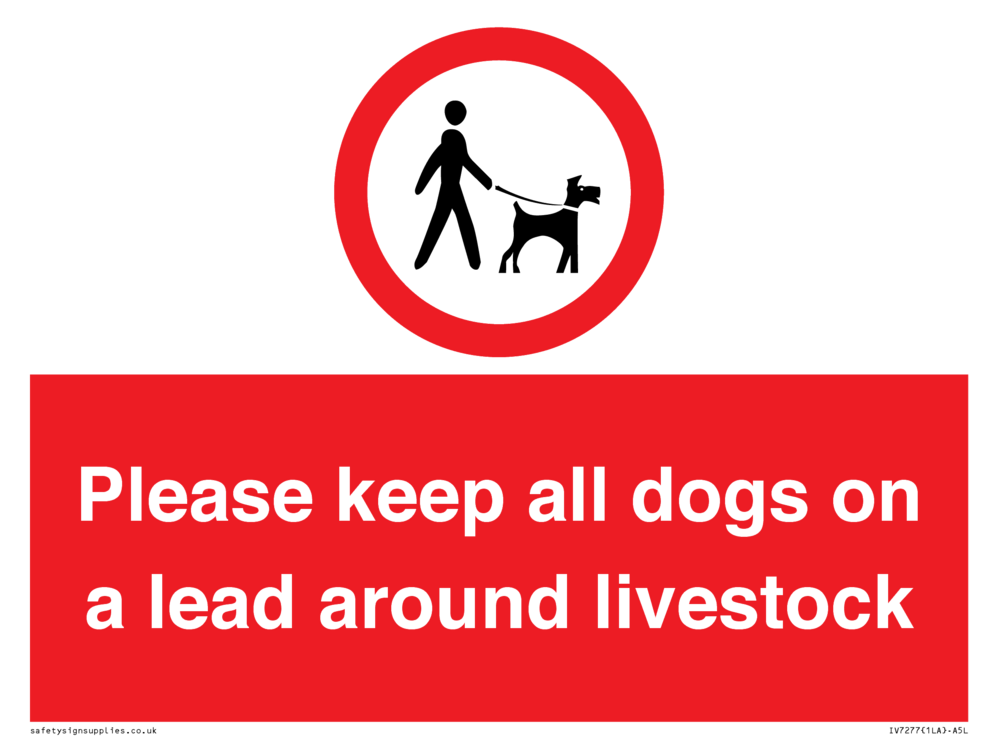 Sign Text: Please keep all dogs on a lead around livestock
