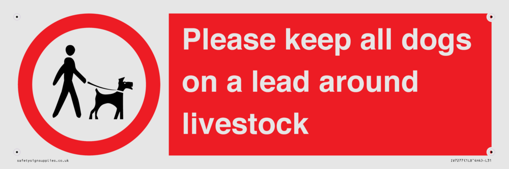 Sign Text: Please keep all dogs on a lead around livestock
