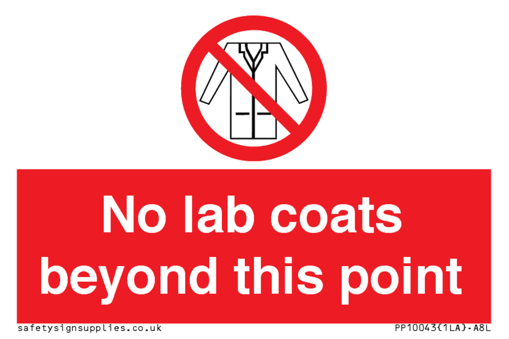 Sign Text: No lab coats beyond this point