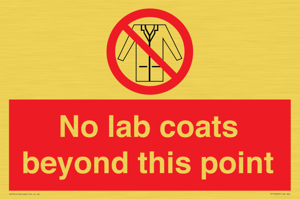 No lab coats beyond this point Sign