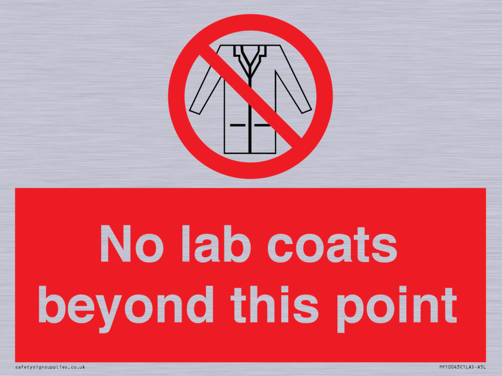 Sign Text: No lab coats beyond this point