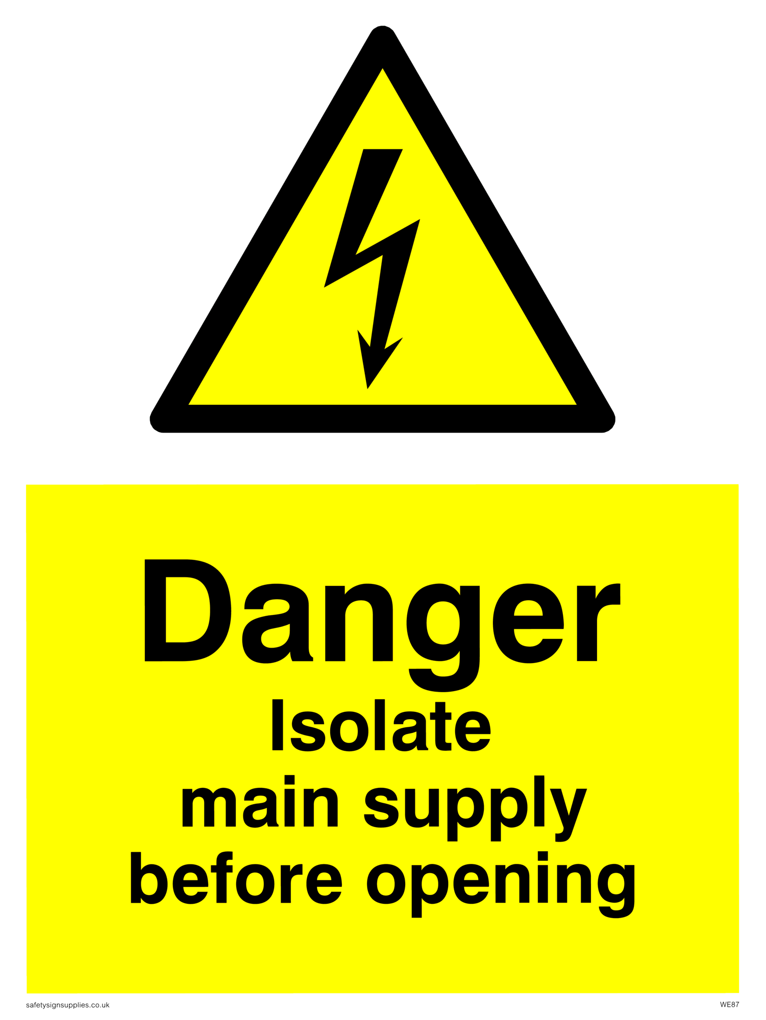 This sign contains an electrical warning symbol. Lightning flash in black on yellow warning triangle with black border.