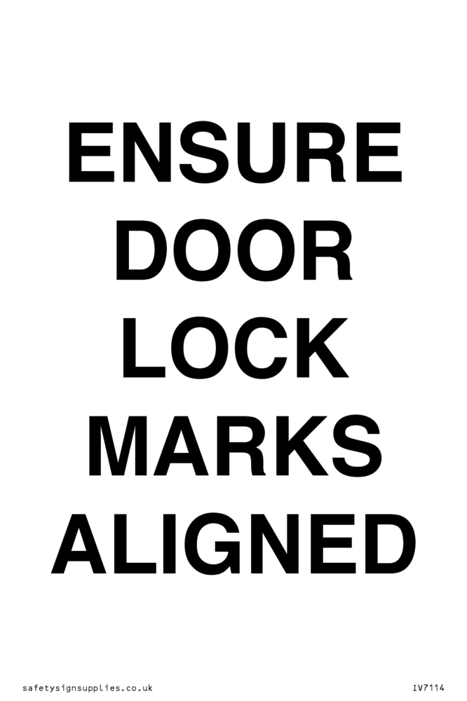 Sign Text: ENSURE DOOR LOCK MARKS ALIGNED