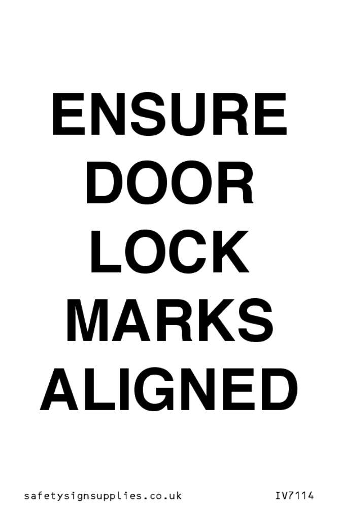 Sign Text: ENSURE DOOR LOCK MARKS ALIGNED