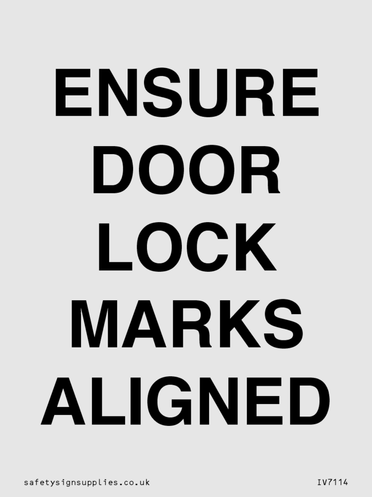 Sign Text: ENSURE DOOR LOCK MARKS ALIGNED