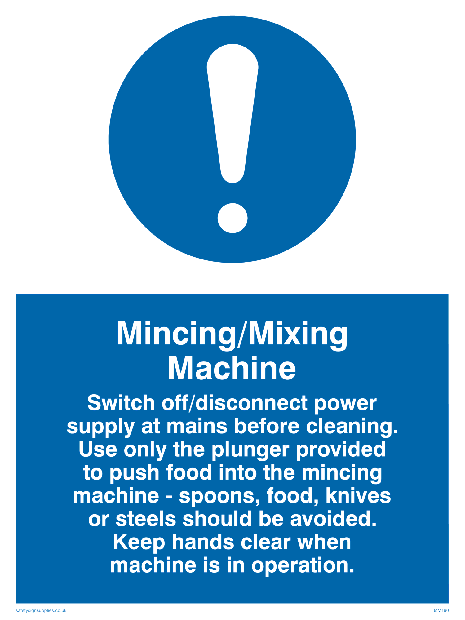 Sign Text: Mincing/mixing machine rules