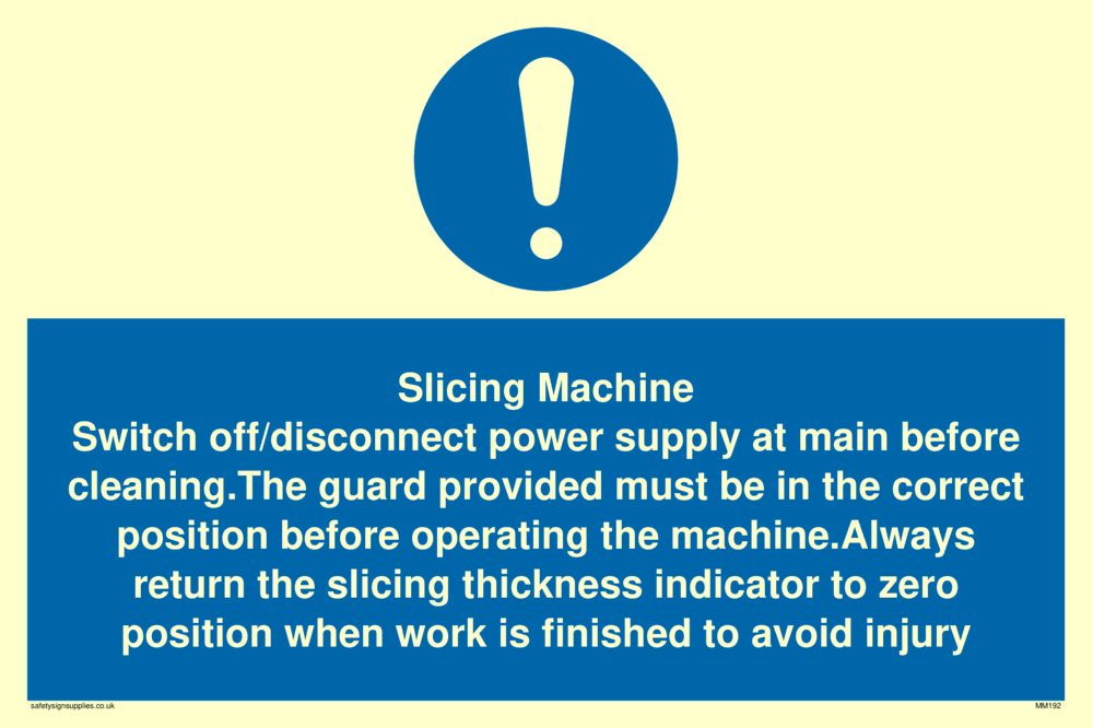 Hygiene / Health signs are often used in the catering industry to indicate measures required to ensure a hygienic environment. Machinery Sign are used to show issues, actions or risks from machines or moving parts. This sign is approximately equivalent to A4 paper size.