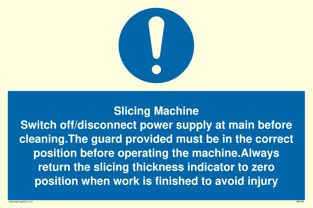 Hygiene / Health signs are often used in the catering industry to indicate measures required to ensure a hygienic environment. Machinery Sign are used to show issues, actions or risks from machines or moving parts. This sign is medium sized.