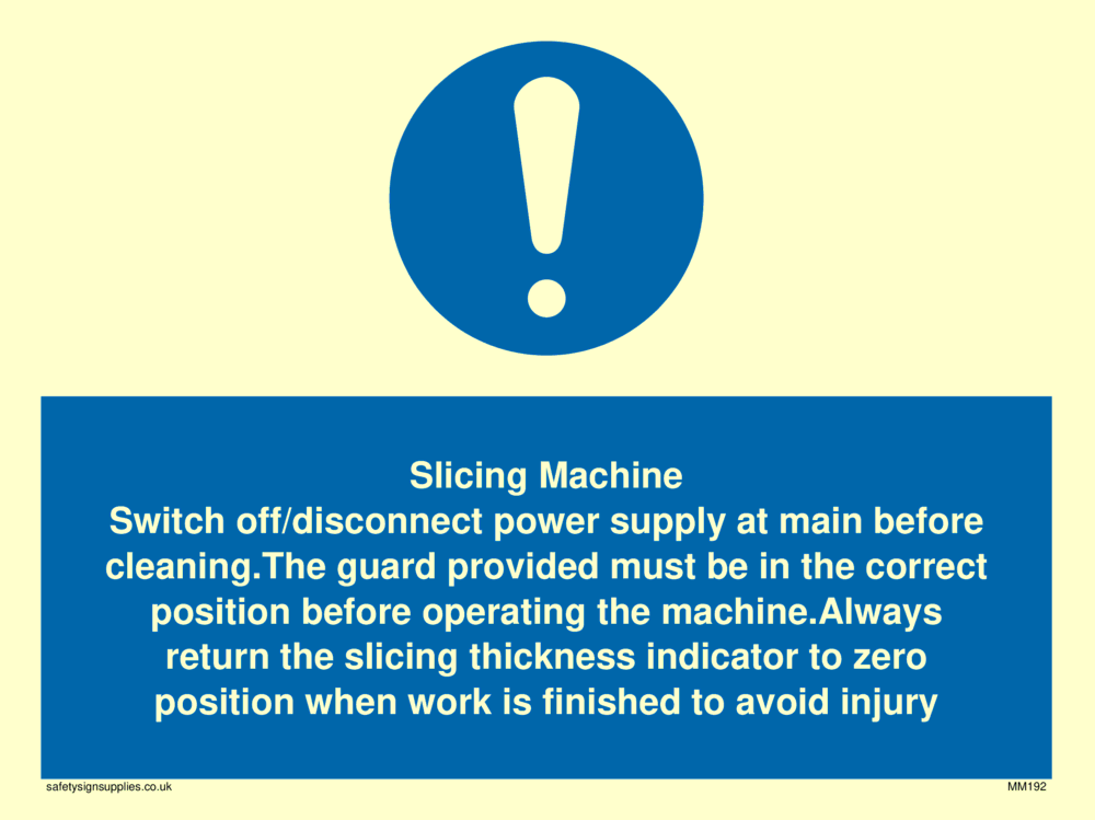 Hygiene / Health signs are often used in the catering industry to indicate measures required to ensure a hygienic environment. Machinery Sign are used to show issues, actions or risks from machines or moving parts. This sign is approximately equivalent to A5 paper size.