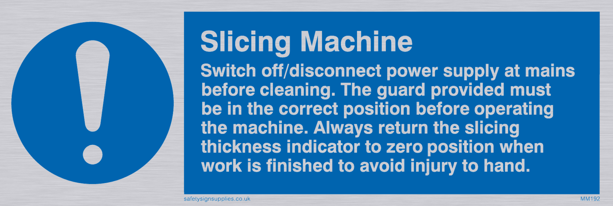 Hygiene / Health signs are often used in the catering industry to indicate measures required to ensure a hygienic environment. Machinery Sign are used to show issues, actions or risks from machines or moving parts. This sign is extra small. Signs in this range are from our maximum choice range. Giving you the most choice of signs available in the UK. Signs in this range are from our standard range.