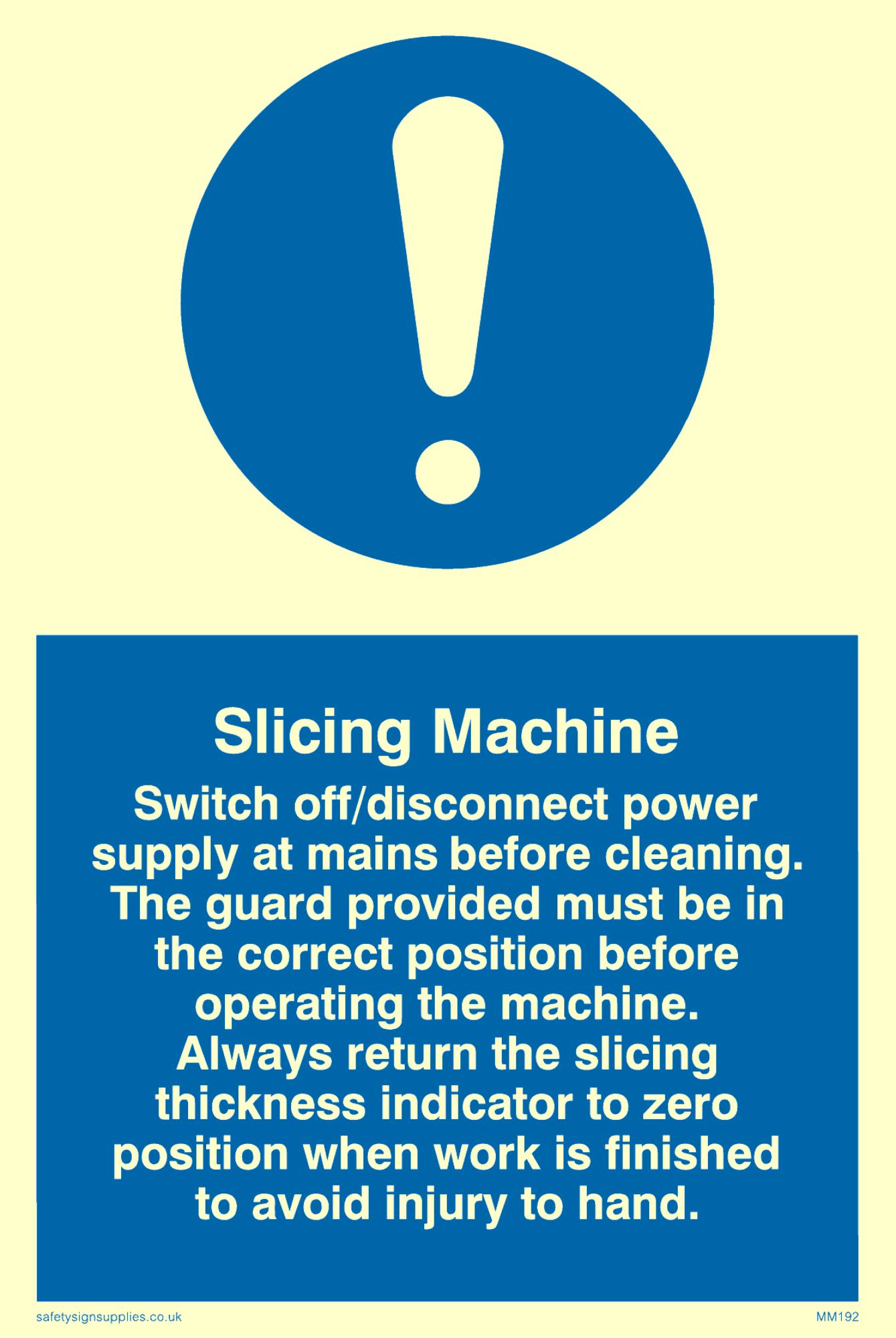 Hygiene / Health signs are often used in the catering industry to indicate measures required to ensure a hygienic environment. Machinery Sign are used to show issues, actions or risks from machines or moving parts. This sign is small.