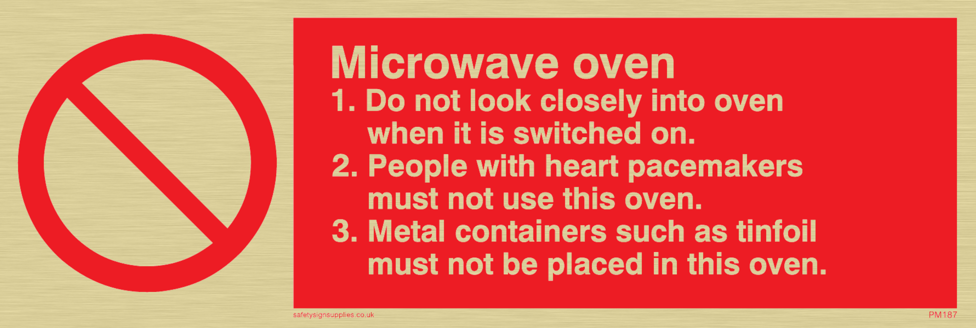 This is a brushed brass/gold effect self adhesive vinyl sign.
